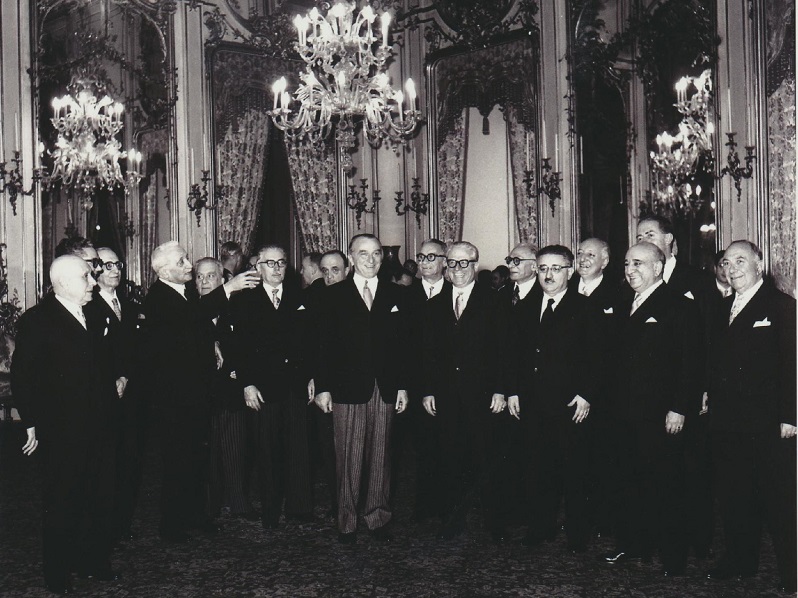 Al centro del gruppo spiccava’ l’alta e diritto figura di Enrico De Nicola.