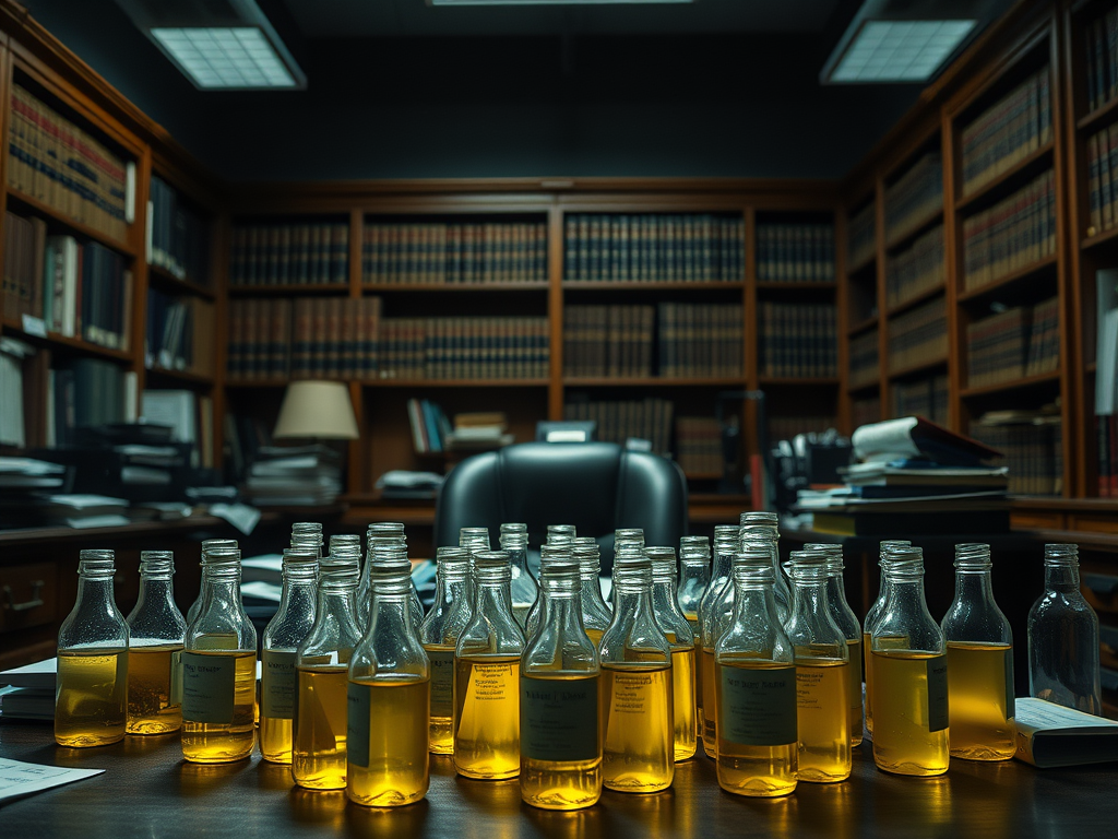Il magistrato che deposita “numerose bottigliette di liquidi organico” nella stanza di palazzo di giustizia.